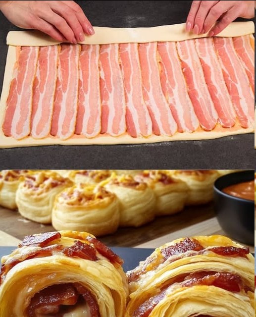 ¡Una idea brillante para un aperitivo en 5 minutos! ¡Desaparecerán en un minuto! ¡Hojaldre y tocino!